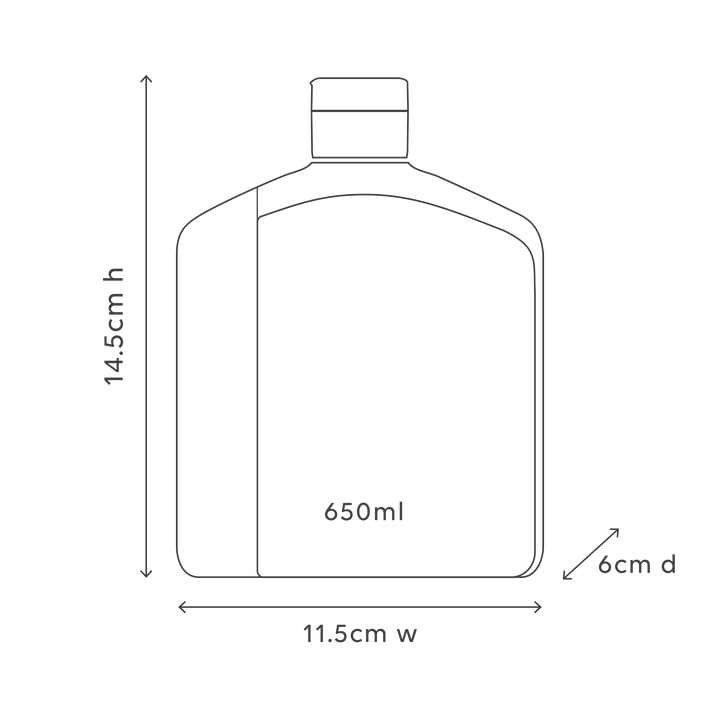 Our 650 ml bottles are made from 100% Post-Consumer Recycled (PCR) HDPE plastic and are fully kerbside recyclable. The bottle label is made from PP with 30% post-industrial waste and can be left on during recycling. The cap is made from PP with a PE liner and is also recyclable when left attached.