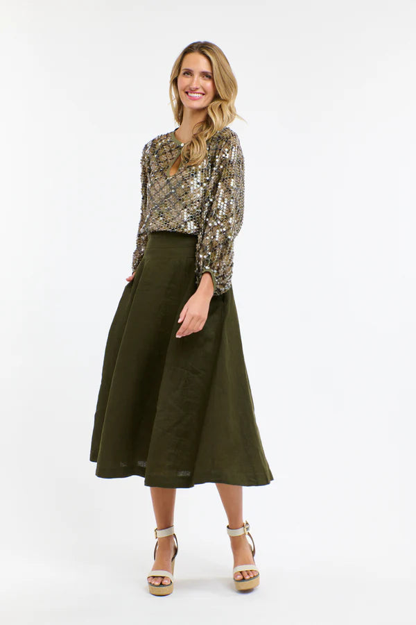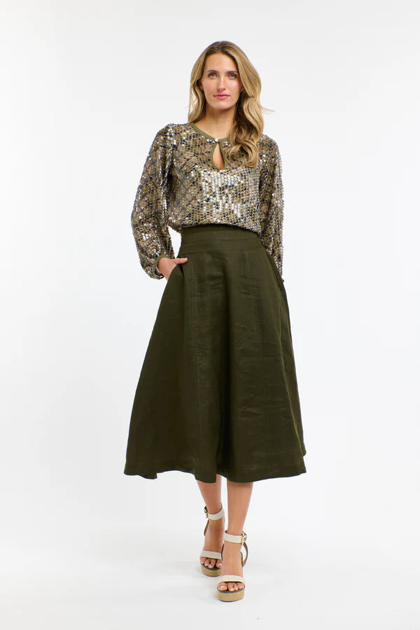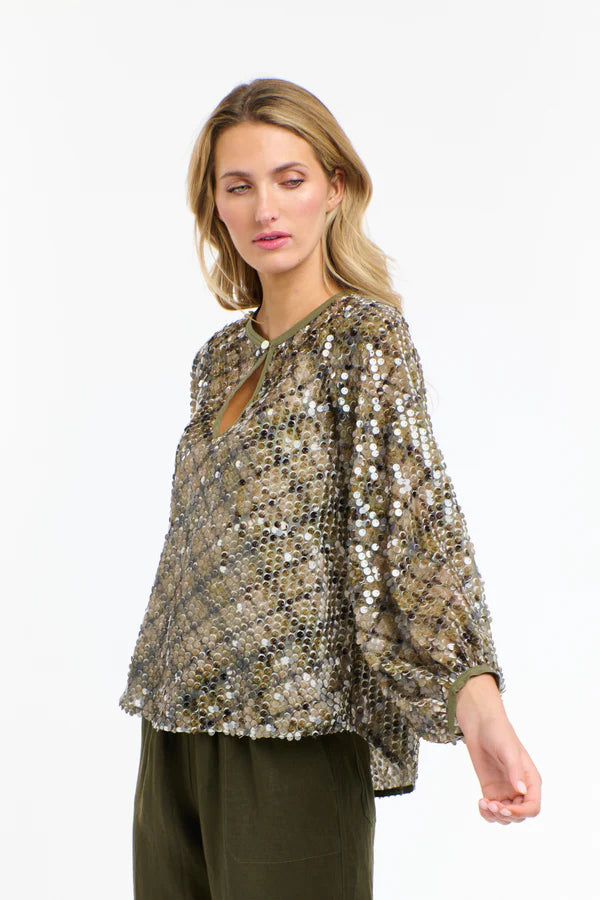 Shimmer with subtlety in this multi-coloured sequin blouse, designed to catch the light in a soft, flattering way. The keyhole neckline and gently gathered cuffs add feminine detail without fuss, while the relaxed fit and fluid drape make it easy from desk to dinner. Wear it with a satin midi for an occasion or downplay the sparkle with light wash denim. A piece that feels special yet stays effortlessly wearable.