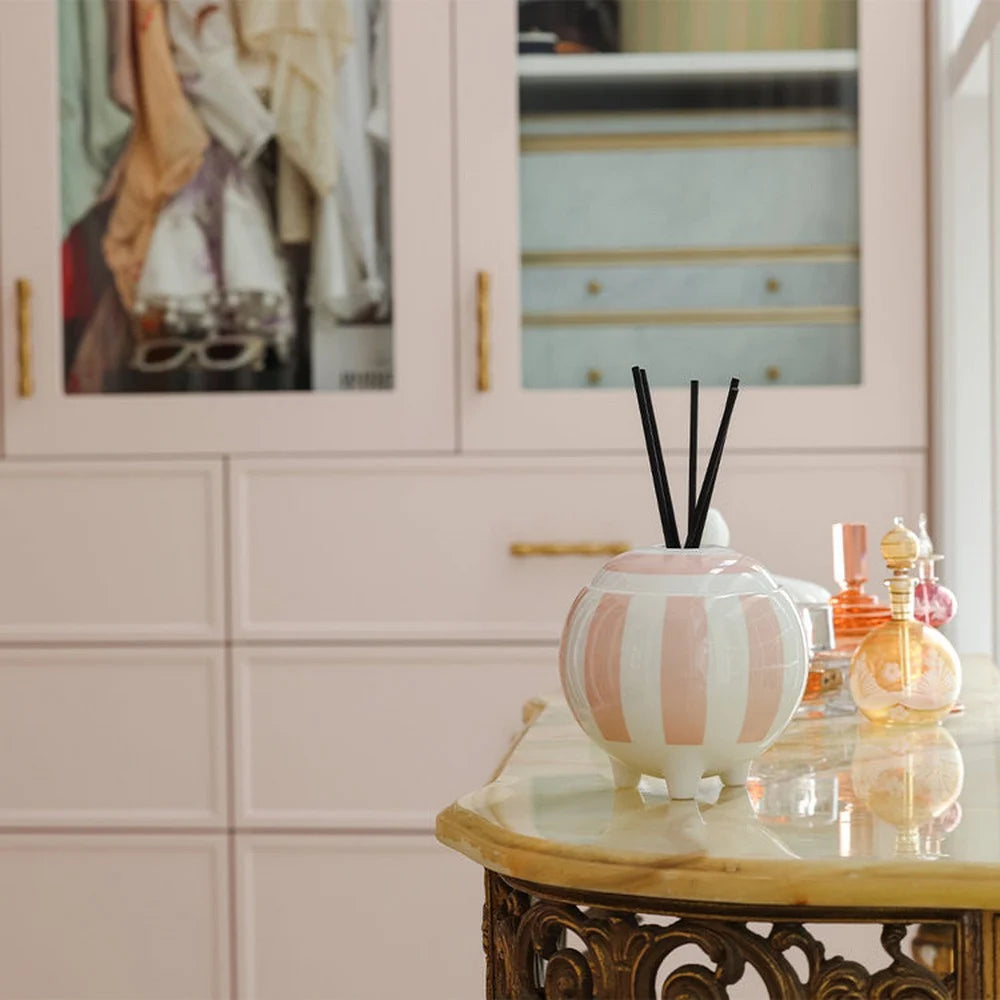 A hand-poured, custom-designed ceramic diffuser that continuously fills your room with the light floral scent of Raspberry, Honey & Musk. Featuring bold stripes and luxe foiling, these ceramics are designed to be re-used long after the diffuser is finished.