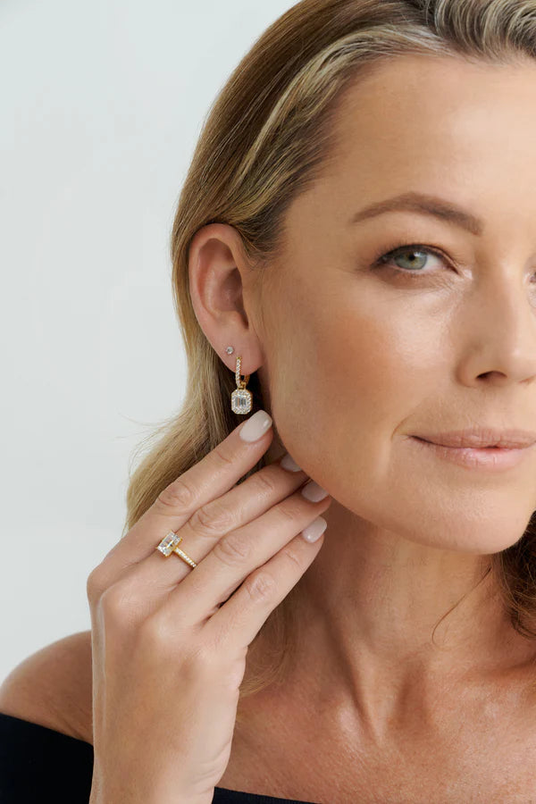Paloma Gold Plated Emerald Cut Cubic Zirconia Dress Earrings